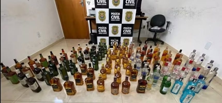 Falsificação foi comprovada pelos rótulos e lacres, disse a Polícia Civil. A Polícia Civil apreendeu mais de 100 garrafas de bebidas destiladas supostamente falsificadas em um supermercado de Bom Jesus da Penha (MG), durante uma fiscalização realizada na tarde de segunda-feira (6).